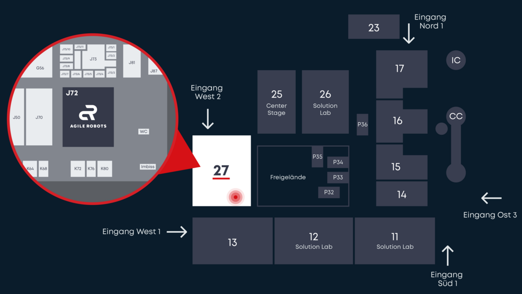 Wir gehen über statische Präsentationen und generische Konzepte hinaus. An unserem Stand kannst Du live und interaktiv erleben, wie unsere Anwendungsfälle in Aktion funktionieren. Entdecke die nahtlose Synergie zwischen Roboterarmen, AMRs, fortschrittlichen Softwarelösungen und unserem humanoiden Roboter Agile ONE – und erlebe das volle Potenzial intelligenter Automatisierung.